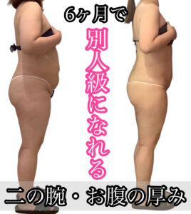 こちらのお客様、コツコツ頑張って通って下さり、二の腕、お腹周りがかなりスッキリしました。
