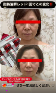 こちらのお客様、脂肪溶解の『RED』にて1回でこの変化です。